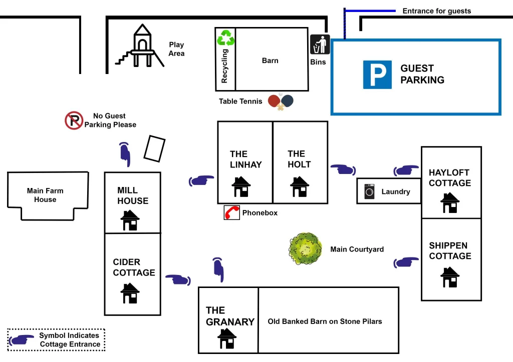 Please do not park outside the cottage the is a large customer car park for you. The parking outside the farm house is for owners use .